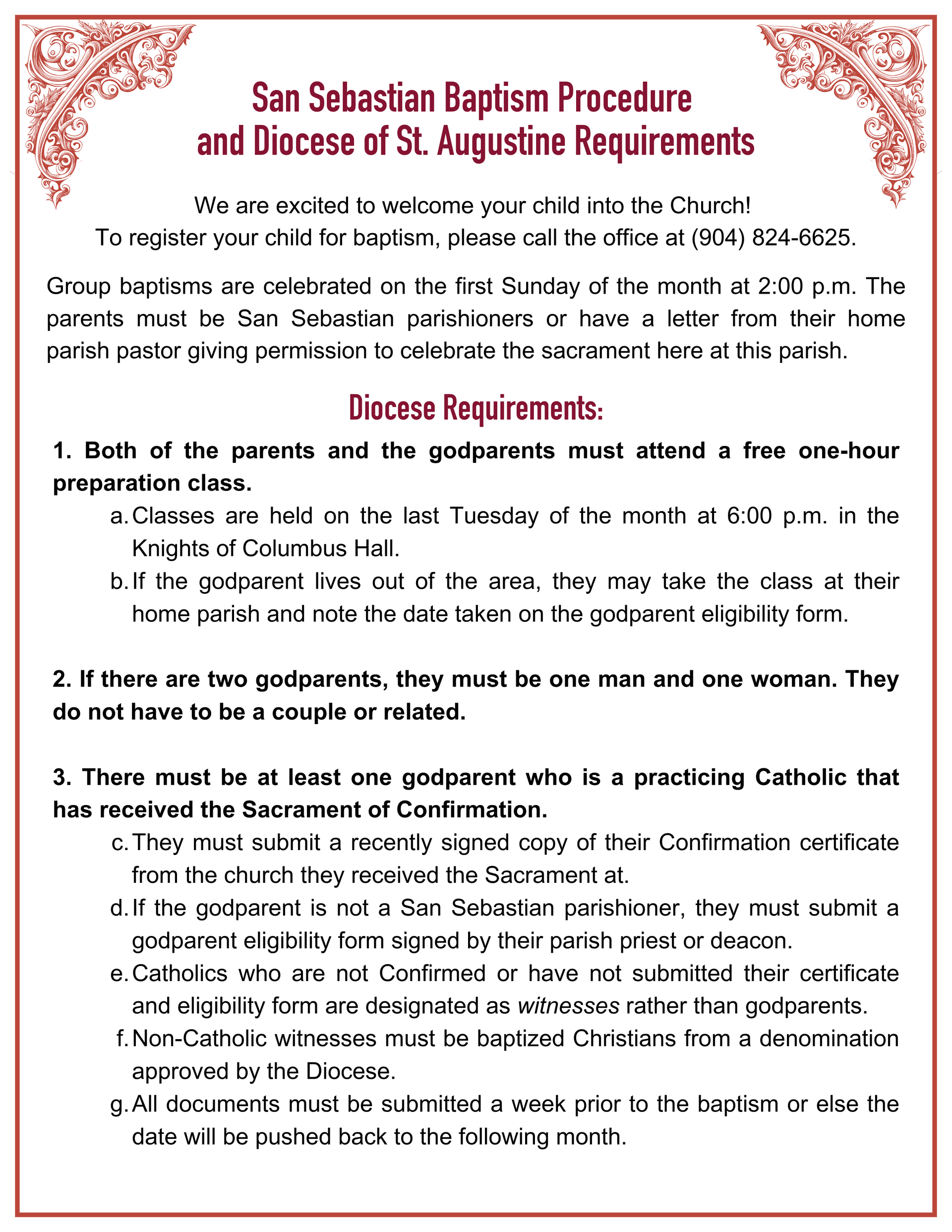 please visit the Diocese of St. Augustine website.